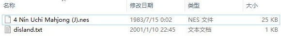 2、打开rom文件夹,选择你想玩的游戏,比如“4人麻将”,点进去解压对应游戏的压缩包“4 Nin Uchi Mahjong (J).zip”,得到如下两个文件