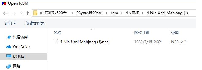 5、找到之前解压出来的文件,选择“4 Nin Uchi Mahjong (J).nes”打开即可