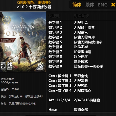 刺客信条奥德赛修改器(风灵月影版)功能以及使用方法