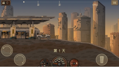 这是一款末日逃亡的跑酷游戏,游戏目标简单明了就是一路向前,越过障碍物和僵尸,不过战车基本上都是撞过去的,我相信不少人都会觉得把僵尸撞得肉末飞溅是这款游戏的非常刺激的画面。游戏的界面和操作也是很简单的,这非常适合新玩家上手。进入游戏界面后,在屏幕的左下角是调节战车重心的两个按键,在中部是战车的仪表,上面显示时速、油量和推进器的燃料量,在最右侧是油门,在战车升级加装推进器后会有一个推进器的油门按钮出现。通过游戏中战车达到的距离获得金币来购买或升级战车的配件,已使战车能够达到更远的地方,直至到游戏关卡的终点,在通过一个关卡后会获得更强大的战车,来应对之后更加恶劣和复杂的道路。