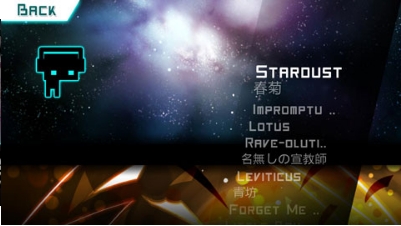 现收录超过30首由香港作曲家亲自打造的原创音乐,音乐风格目前偏向电子音乐为主包括Trancecore、Hardcore、Glitch、Oriental、Chiptune 等、未来更新将会增加更多多元化的音乐风格包括Dubstep、和式电音、Psytrance、Breakbeat等。游戏内包含过百个谱面,由入门的Basic级渐进至资深玩家也不感乏味的Hard级、什至超越Hard的自定义超难度谱面”Mega”、”Giga”级。