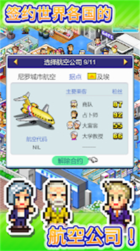 2、小清新的像素画风打造,接待一系列的乘客们,添加各种航空路线吧。