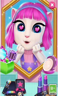 安吉拉也是需要美美的!除了日常的梳毛外,我们可以在化妆间里面,帮助安吉拉涂口红、涂眼影、画眉毛,每个化妆品都有不同的颜色和样式,我们可以打造安吉拉的独特风格。只有你想不到,没有游戏做不到。我们在游戏中可以帮助安吉拉换肤色,换发型,或者换日常的服装,衣服的款式非常多,总有一款你喜欢。