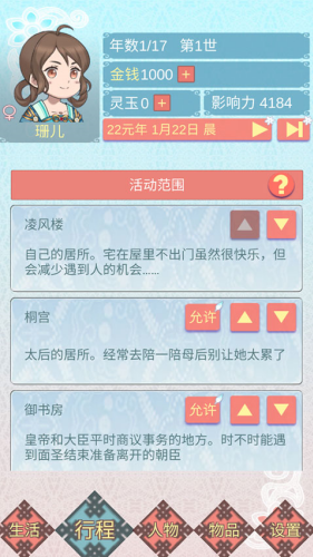 3、在这里开启全新的人生之旅,精彩的宫廷生活,可以不断的解锁体验。