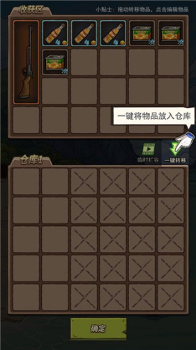 5、将得到的物资可以存到仓库中就可以开始冒险了