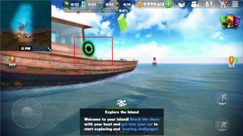 2、进入游戏后,玩家是在船上,你可以通过通过左边的按键控制方向,右边的按键来控制油门和刹车;