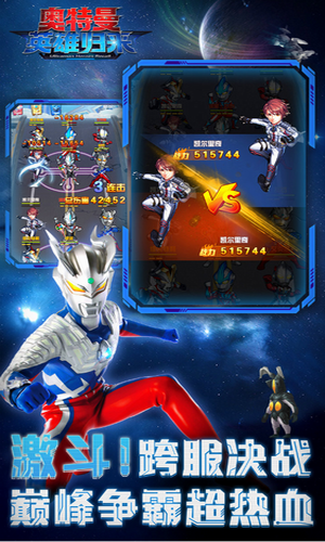 1、超多动漫经典的奥特曼角色登场,炫彩特效,视觉震撼冲击体验。