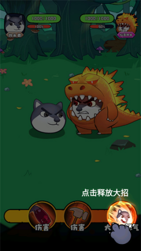 4、除技能外,游戏中还可以狗头变身,变身后有一定加成;