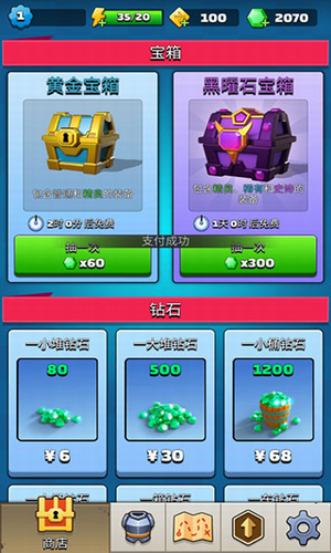 2、多种多样的弓箭选择,通过关卡胜利赢取的金币来购买解锁新的弓箭。