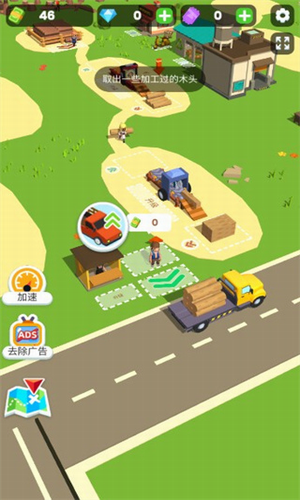 2、轻松点击玩法,解锁卡车不断的运输大量的木材,收入就会越来越多。