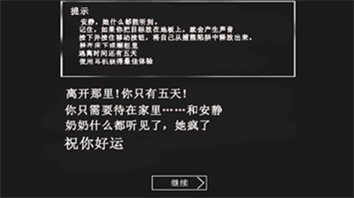 1、与恐怖奶奶对抗,在暗黑的屋子里生存五天。