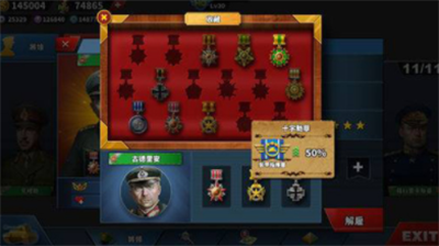 勋章只能通过战役和征服获得,无法刷,可以花钱买。回到截图,中间正上方,是你的指挥部等级,完成战役征服任务等等都可以获得经验来升级。随着等级的提升,可以解锁对应的科技、将领等。