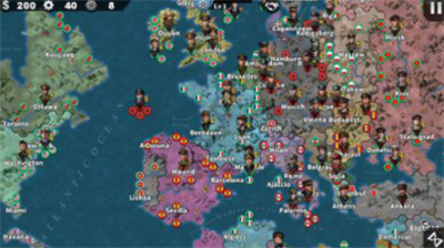 2、右上角是时间,对应月/日/年,现实中1秒等于游戏中1h(小时),游戏中1天就是现实中24秒,有兴趣的数学帝可以算算游戏中过1年等于现实中过多少秒。随着年份的增加,会解锁新的征服地图。注意点,ipad合上屏落、手机锁屏,游戏时间会静止。只有游戏中,或者挂机,游戏时间才变化。