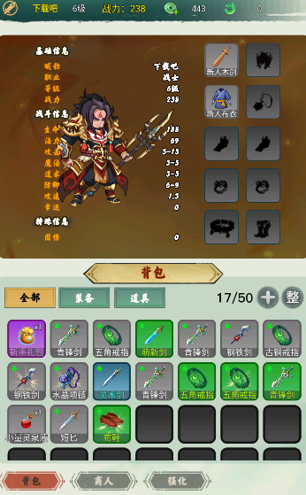 2、给自己的角色穿上对应的装备,品质越高提升战力的输出越高,通过击杀敌人掉落装备。