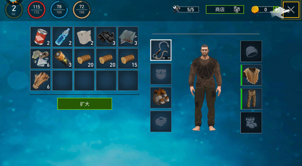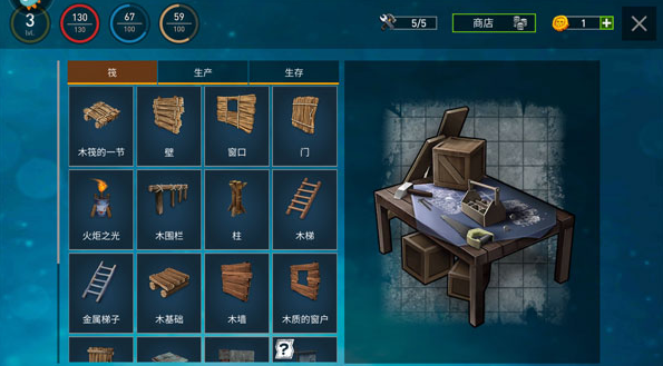 3、使用手头仅有的物资来制造工具,从而帮助自己能填饱肚子。