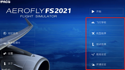 在驾驶飞机之前,我们可提前设定飞行技巧、飞机型号、飞行地点、航线设定以及环境等各项游戏参数