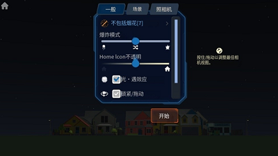 2、进入游戏后可以根据个人的需求设置烟花的爆炸的模式,还能看到光的亮度变化等;
