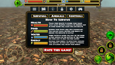 1、游戏为玩家提供了逼真的蟒蛇模拟体验,玩家可以感受到蟒蛇的生活习性,如捕食、生存等。