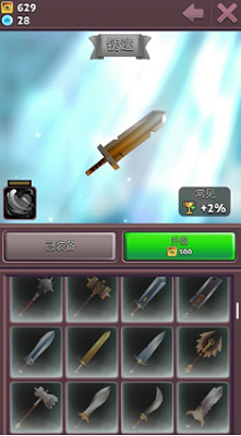 剑、刀、锤子、斧头、盾等百种不同外型的武器和数千种不同的特色技能,等你来收集(升级)。