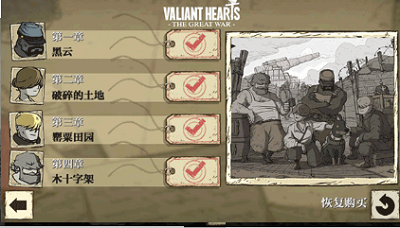 勇敢的心世界大战汉化破解版是一款采用一战时期为背景的战争题材游戏,将跟随4个角色在世界大战中的故事,可以免费体验哟,趣味的冒险游戏,很多道具和装备等你去解锁,玩家需要根据故事情节找到答案。玩法益智,游戏的设计也是非常有意义,我们的愿望是世界和平,一位年轻的德国士兵找到他的爱人!所有角色都将会获得他们忠犬的狗同伴 Walt 的帮助,残酷的战阵下生活的来自几个不同国家的小人物,在它们身上能够看到人类最好的品质,游戏很残酷,强大的武器虽然摧毁了人们的家园,却无法阻挡人们之间的爱意,在这里,玩家可以感受到战争的硝烟,为您还原最真实的战争场景。