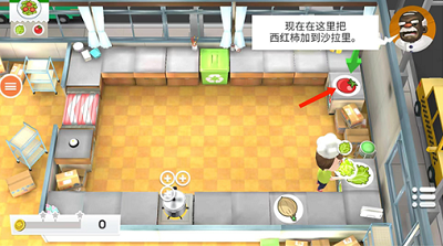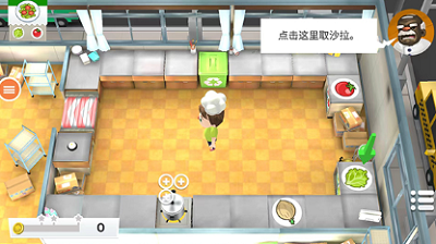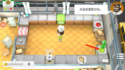 3、开始烹饪,可看到左上角为订单,根据需求做出来即可,首先我们点击蔬菜取沙拉,
