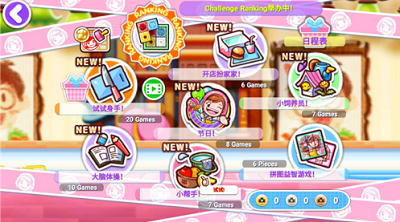 除了当店内的小帮手、开店扮家家、大脑体操等,烹饪以外的游戏也很充实。有超过30种以上饱含趣味性的游戏正等着你。试试挑战看能获得怎样的高分吧!