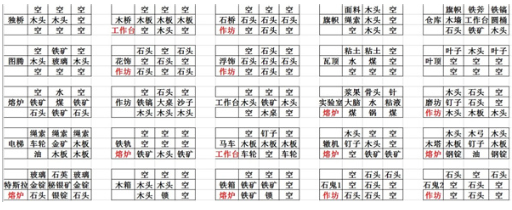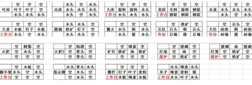 1、桥类、熔炉、作坊等物品合成表一览