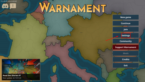 1、打开战争警告中文版,点击右侧settings;
