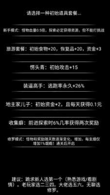 流浪日记破解版最新版是一款文字养成生存冒险游戏,结合了文本元素和培养元素的全新冒险玩法,玩家需要同时自由的增强自己的能力和身体的健康,即使补充资源能量,一款全新的冒险系列的游戏,游戏中还为玩家准备了超多有趣的玩法以及独特的随机事件可供玩家体验。玩家将在游戏中扮演一名离家出走的少年,在探索过程中会遇到很多有趣离奇的事情,在山林里还有凶猛的野兽,玩家需要制作足够的武器与工具来防卫攻击,玩家可以访问最好的质量和最具挑战性的游戏模式。为玩家展示了大量的文字,都是最简单的风格。