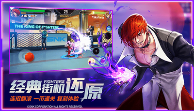 拳皇命运破解版全人物内购版是由腾讯游戏代理的大型热血街机格斗手游,游戏经SNK正版授权,拥有童年游戏的所有拳皇人物角色,包括草薙京、八神庵、不知火舞、吉斯、高尼茨、二阶堂红丸、镇元斋等等,让玩家充分的融入时光的游戏中,格斗巅峰大作正版延续,SNK全程监制,游戏再现风靡全球的超爽格斗。世界综合格斗大赛KOF召开全世界的格斗高手集聚南镇,所有的队伍,抱着各自的目的进行战斗,正义与邪恶的对决一触即发。游戏中每个人物的招式技能都非常还原,并且手感非常好,玩家可以轻松找到最初的快乐,游戏中玩家还可以与其他玩家激情PK,感兴趣喜欢热血格斗游戏的玩家一定不要错过这款游戏。