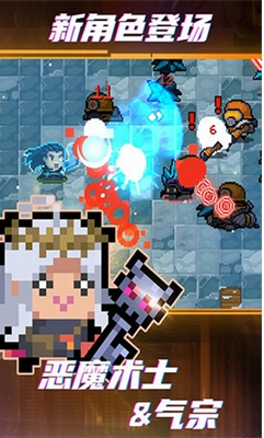 1、丰富的关卡挑战多样的角色自由选择,进入不同的房间随机出现的怪物有可能是BOSS紧张感十足。