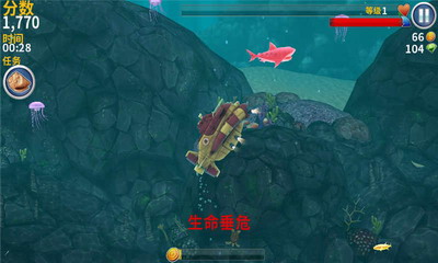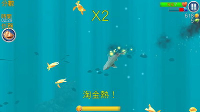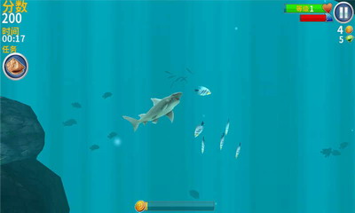 玩家朋友们不要想着吃大鱼得高分,小鱼分数低就不去捕捉。鲨鱼的饥饿程度是和跑动的距离有关的,如果不及时的进食,是很容易饿死的。所以不要挑食,大小都好。