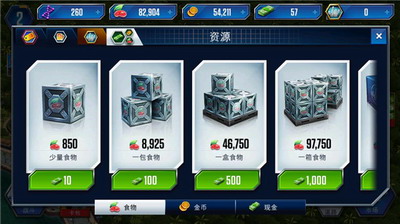 2、食物:恐龙升级资源。玩家可通过食物工厂生产、升级、现金购买等方式获得食物。当玩家达到相应等级后,更可升级食物工厂,提升食物产出量。