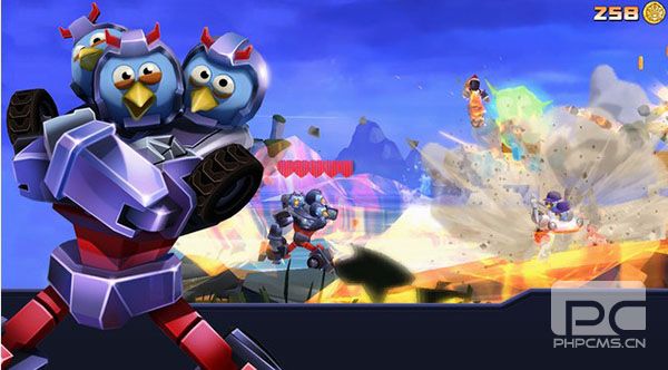 1、物造型独特,怒鸟的头,变形金刚的驱干,形象十分可爱搞趣,游戏配乐很出色。