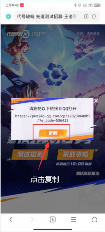 在浏览器中选择QQ或微信登录,点击后会提示【请复制以下链接到QQ/微信打开】,此时点击【复制】按钮复制链接,部分浏览器不支持一键复制,此时可以长按链接来进行复制