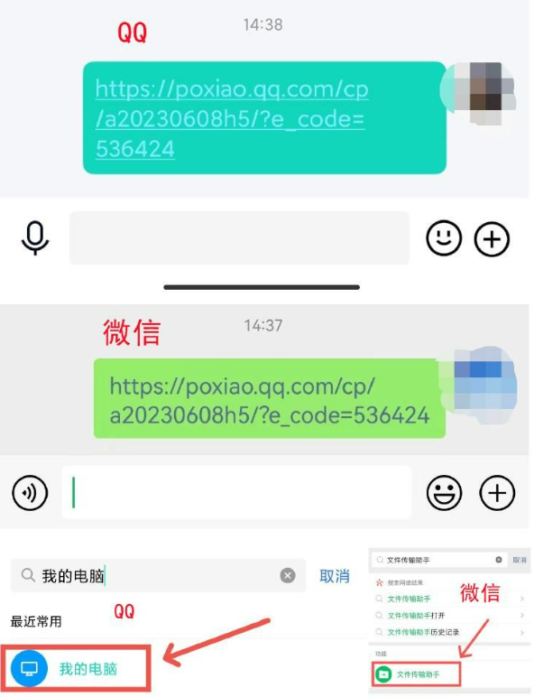 打开QQ/微信,将复制好的链接发送给一个好友(QQ可以选择发给我的电脑,微信可以选择发给文件传输助手)然后点击链接打开即可登录