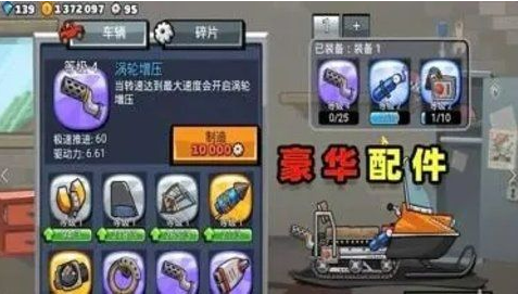 可以让我们一箱油跑的更远。想要升级这四项零件,只能通关金币来升级,而游戏前期我们并不富裕,所以可以从以下方式来改善车辆性能。