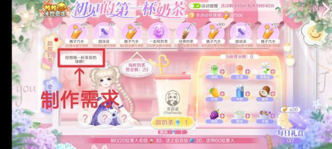 1.活动页面npc左上对话框中查看需要制作的奶茶种类