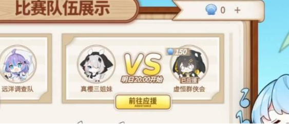 1、进入活动页面以后,点击前往作战,可以查看当天的比赛队伍,然后选择应援。