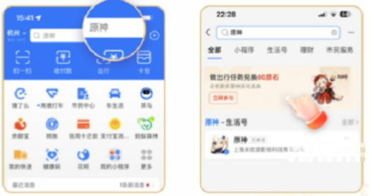 打开支付宝在搜索栏进行搜索原神就能看到这个活动,点击参加活动就完成了。