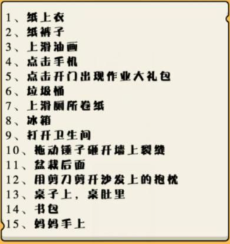 这一关我们需要在房间里找到所有暑假作业,有在外面的,也有藏起来的