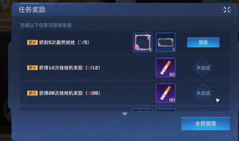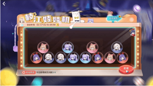 玩家可以通过枝江派对中的娃娃机抓取奖励,每天可以抓取4次,还可以根据抓取次数领取对应奖励。