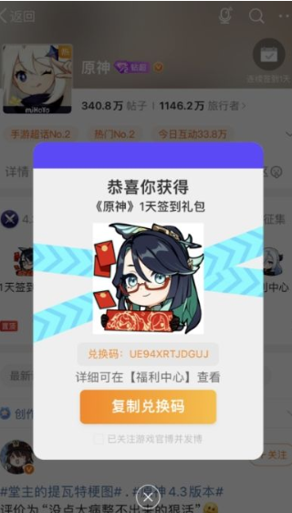 以上就是原神微博签到兑换码领取攻略分享的全部内容了,希望能帮助大家。