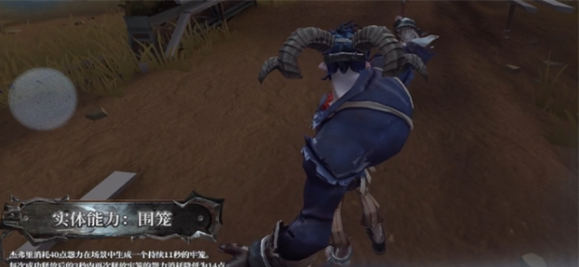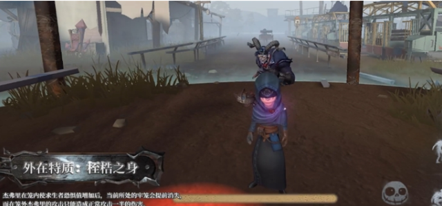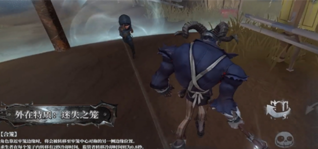 能够利用机关与幻觉制造出让人难以逃脱的牢笼,牢笼的边缘有实体碰撞,所有角色都无法直接进出牢笼,释放牢笼会消耗怨力,怨力每秒恢复2点且上限为120点,求生者在牢笼范围内会降低10%板窗交互速度。