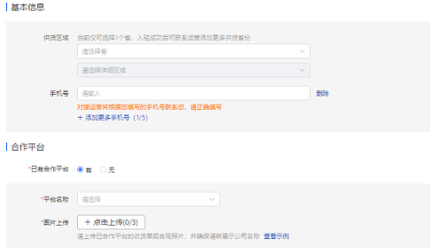 5、最后填入店铺相关的信息,提交对应材料。等待审核通过后就可以入驻成为供应商了。
