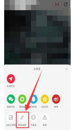 2、点击右上角的“分享”点击“复制链接”。