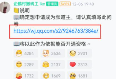 第五步,内部每隔一段时间会发放问卷,填写问卷完成审核即可成为频道主。