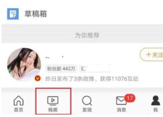 1、首先打开微博,然后点击下面的“视频”。