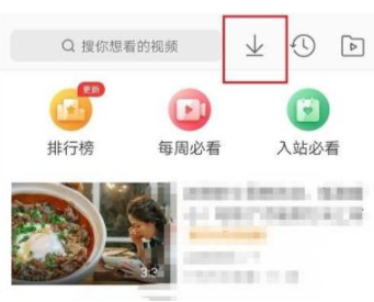 2、然后可以看到视频的上面有一个向下的箭头。