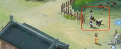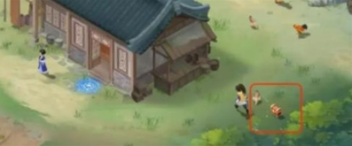 2、我们打开宝箱是会有母鸡拦截,所以我们需要与秦猎户进行对话,借来小黑进行赶母鸡。